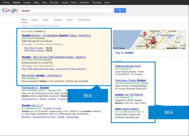 De zoekmachine van Google maakt gebruik van een eigen advertentiesysteem; Google AdWords. Dit is het meest bekende Google systeem van Nederland (Alsem, 2013).